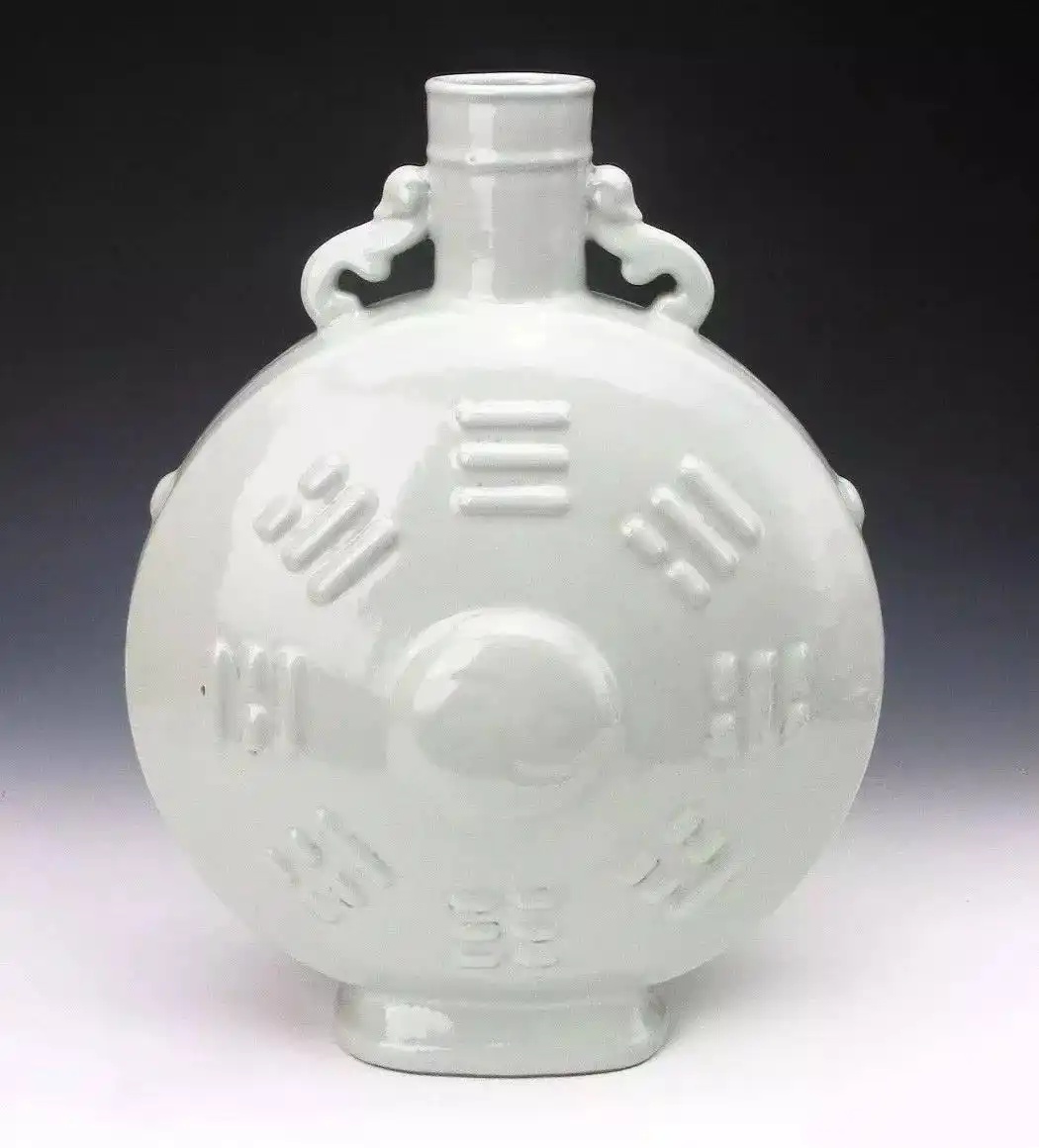 清雍正款冬青釉八卦双耳扁瓶