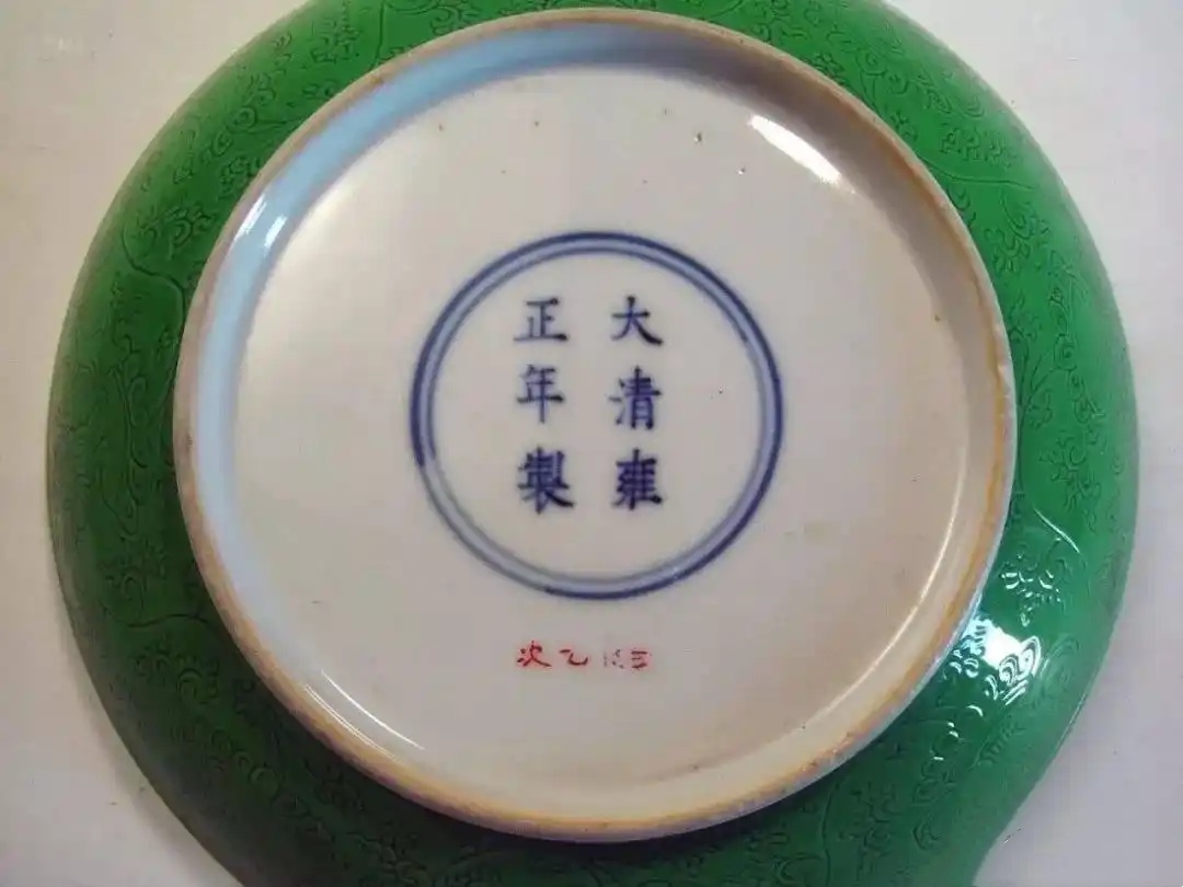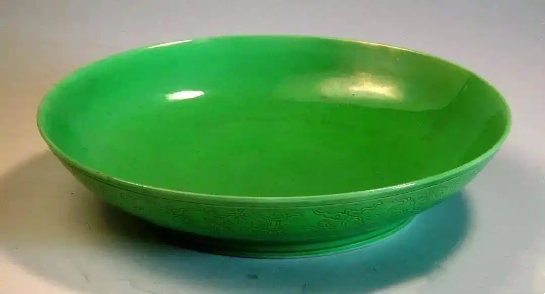 清雍正款锥拱八宝绿釉盘