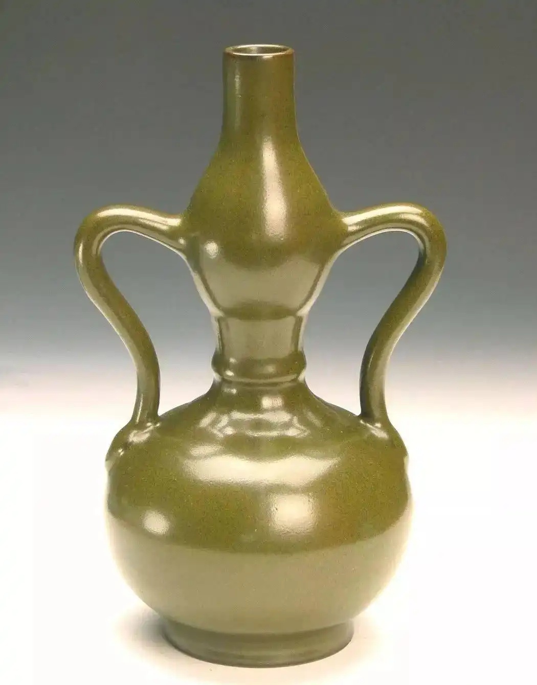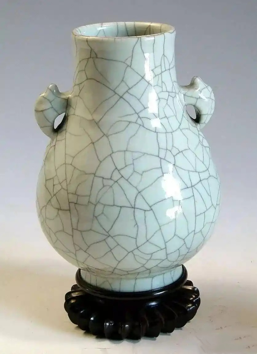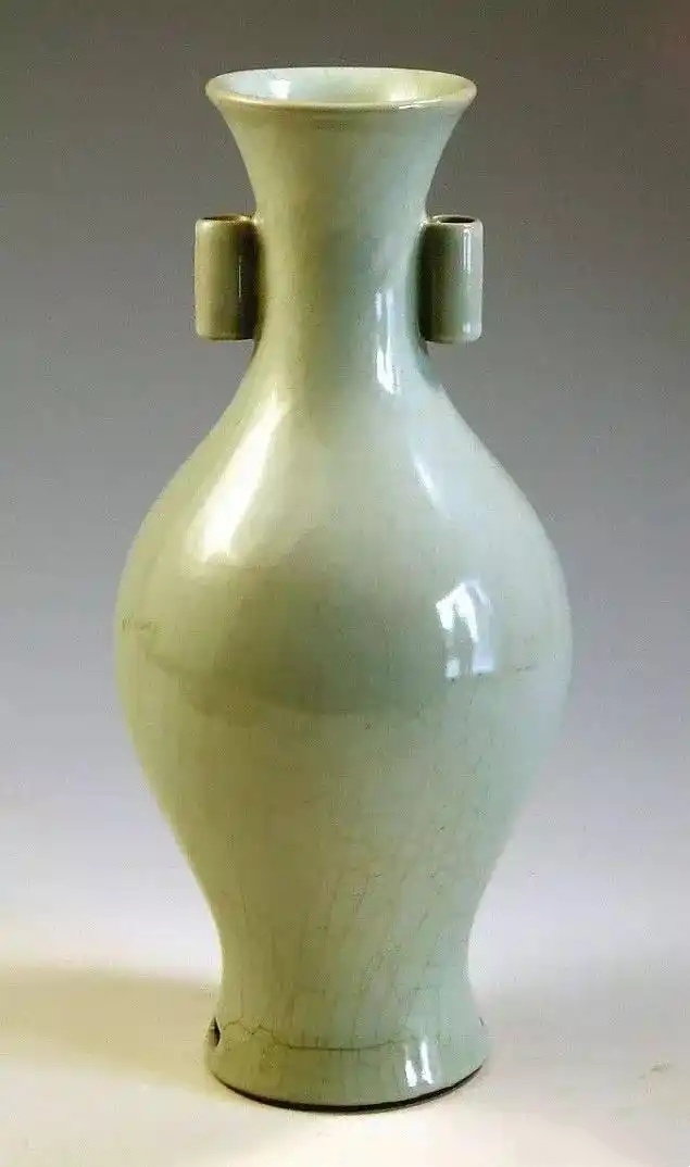 清乾隆款灰青釉开片仿汝穿带耳观音瓶
