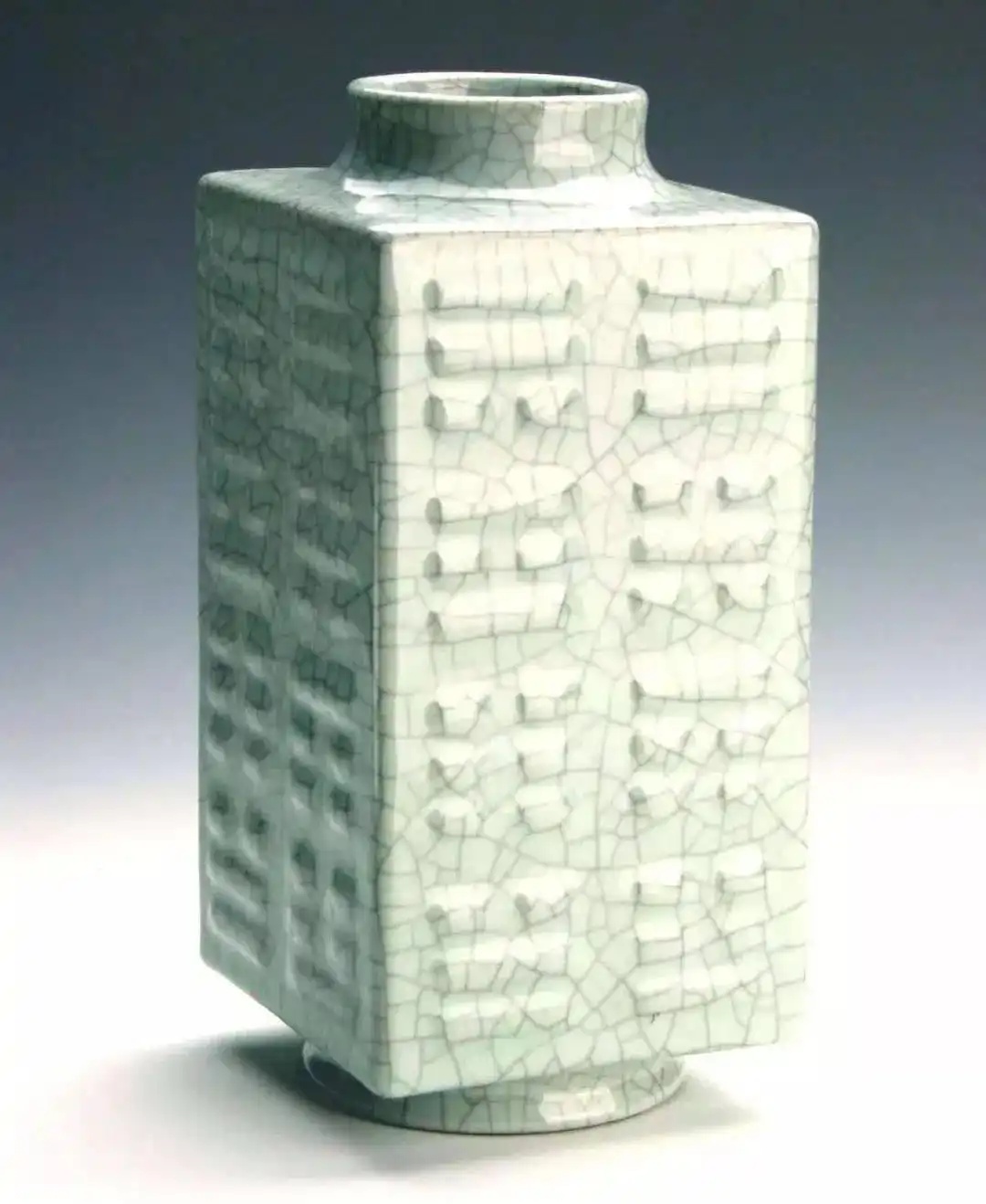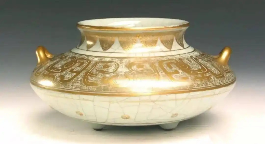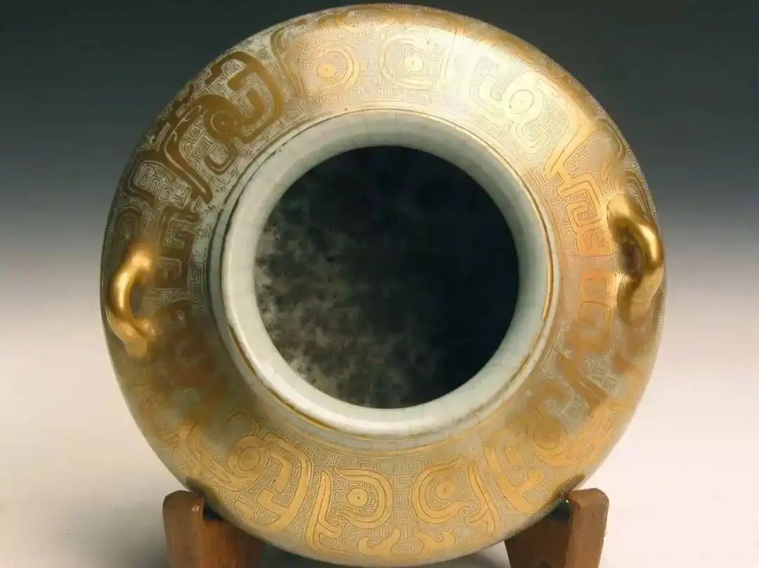 清乾隆款冬青釉描金饕餮纹鱼篓尊