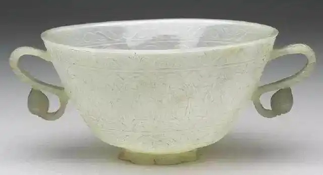 这种追求玉器薄胎、透明的工艺是痕都斯坦玉器的一大特色。这种薄胎雕刻工艺难度大,技术性强,因为薄胎的坯体薄、强度低,制作过程中极易破裂。制作者在制作时,需具备高超熟练的操作技艺,执行严格的工艺规程。在古代,玉瓶类器物“掏膛”的手段是一门绝技,玉雕匠人需随着器物的形状,将实心的玉料掏空,器物壁身的厚度最薄的只有一两毫米。可见这种工艺的难度之高。