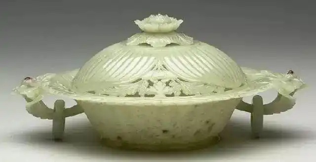 痕都斯坦玉器主要有食器与杂器两大类,以实用为主。食器类有碗、杯、盘、壶等。杂器类有瓶、罐、盒、文房用具、香炉等。中国传统玉器中常见的礼玉、佩玉、摆设玉却很少。