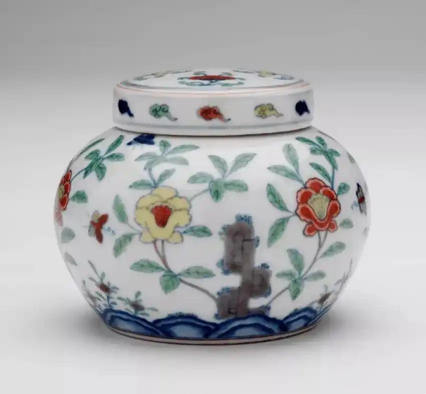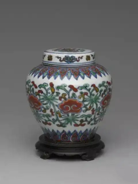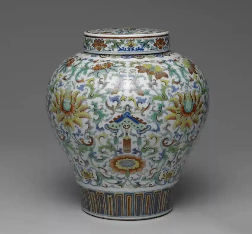 清乾隆 斗彩缠枝莲纹盖罐(正面)