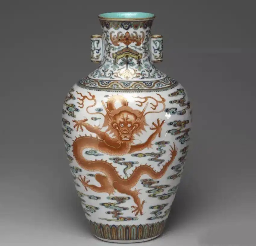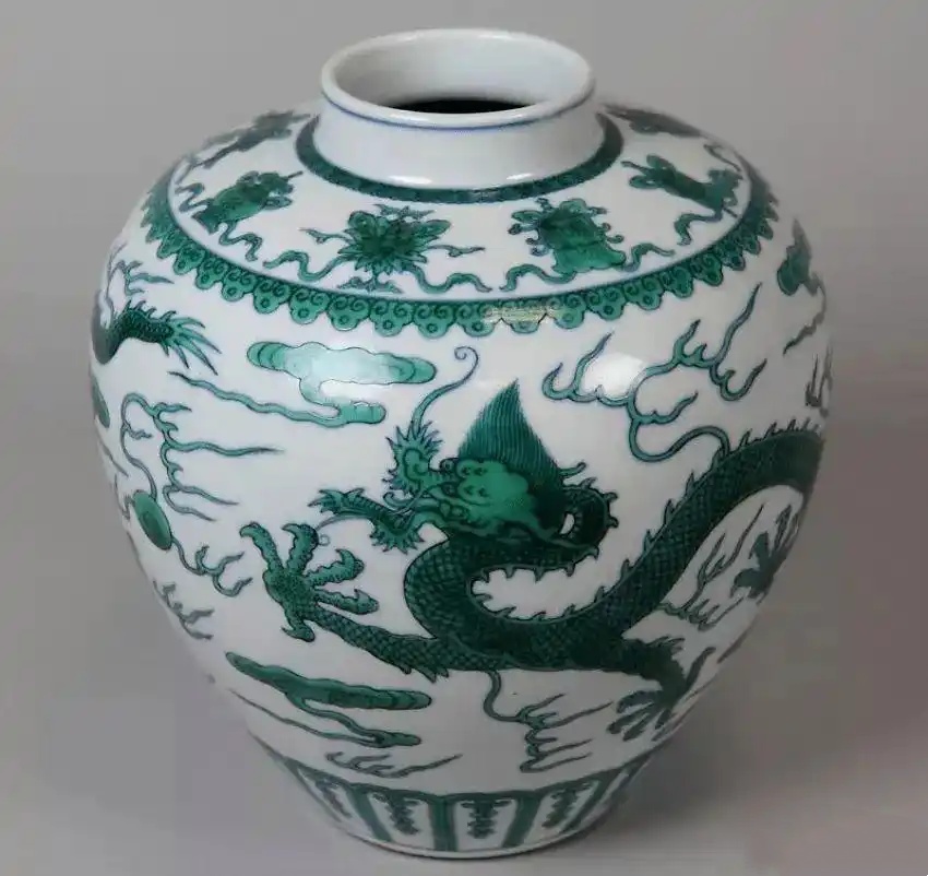 清乾隆 斗彩绿彩云龙纹罐(正面)