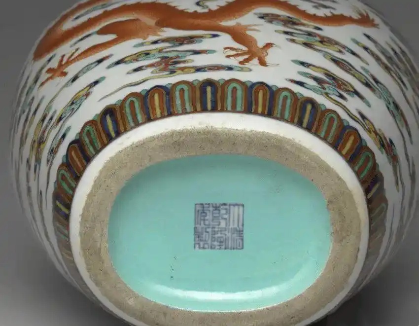 清乾隆 斗彩绿彩云龙纹罐(底部)