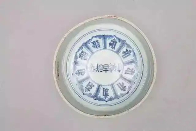 青花蓝查体梵文出戟法轮罐之盖 明宣德