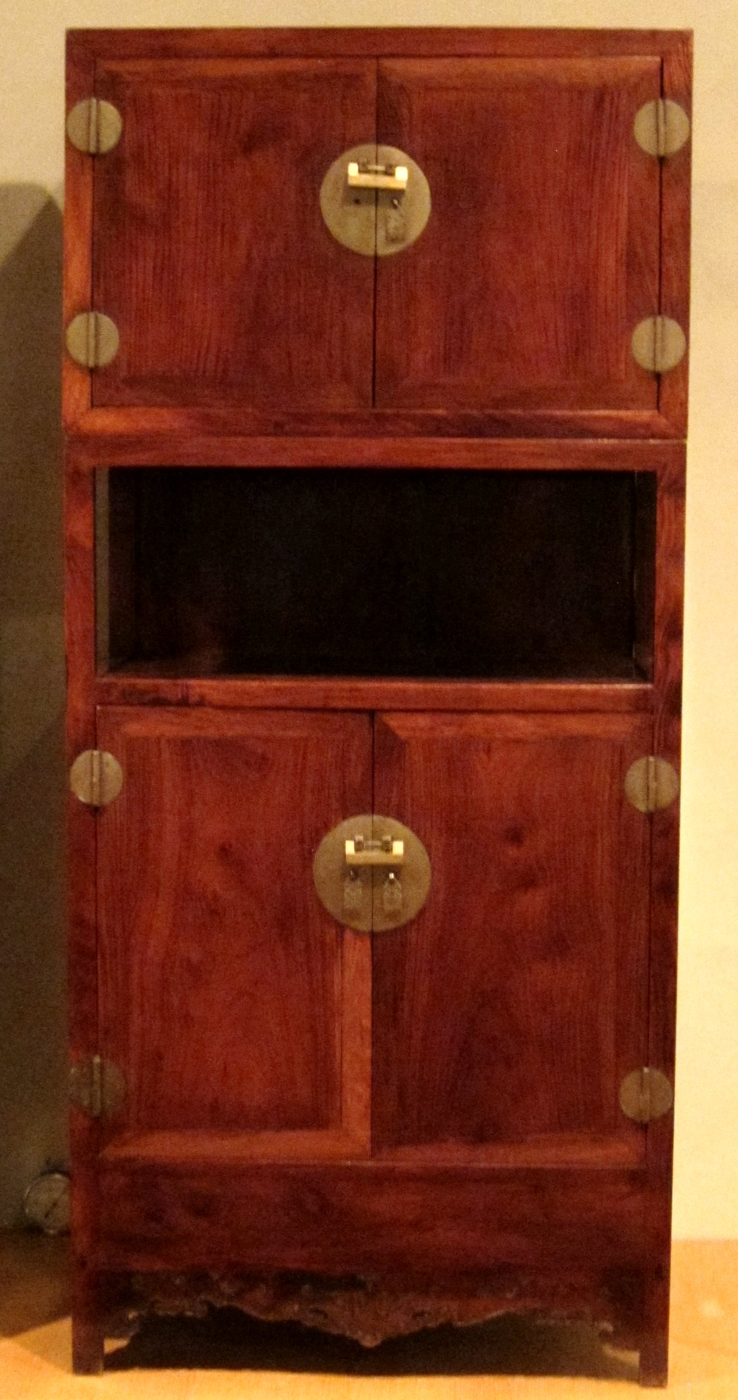 图一 黄花梨梳妆台 如此造型的黄花梨梳妆台存世有一定的数量,各大博物馆,民间,拍卖会上屡见不鲜。