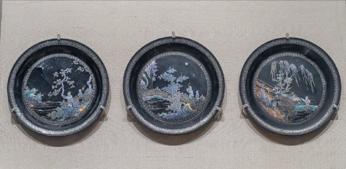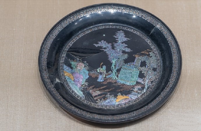 苏州博物馆收藏的清代螺钿嵌金片人物山水漆盘