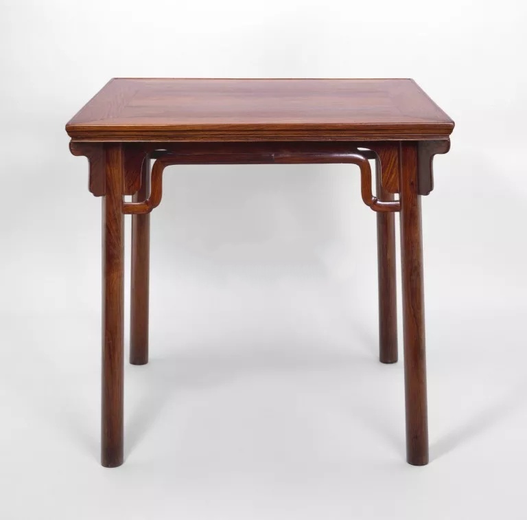 清 黄花黎展腿柱础足罗锅枨八仙桌