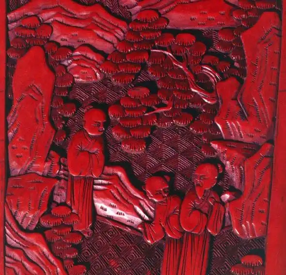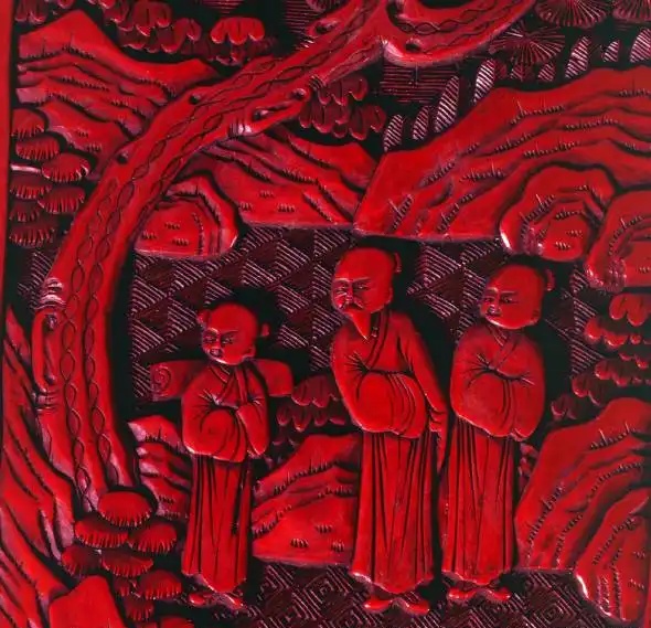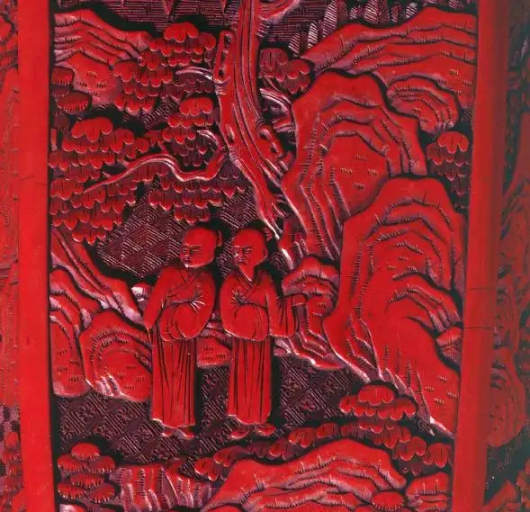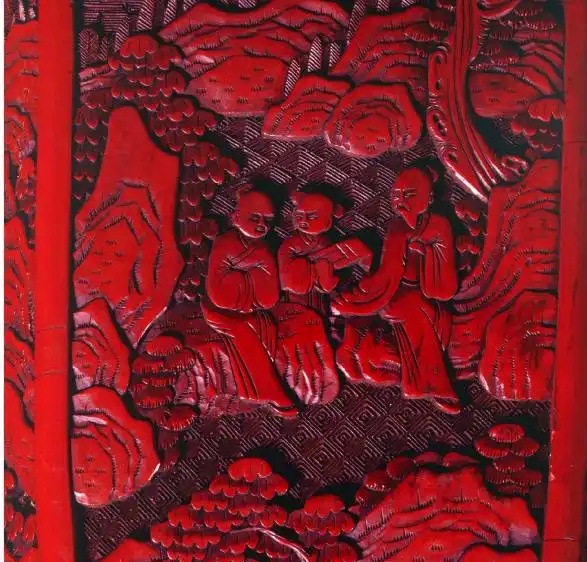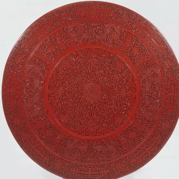 清 剔红人物缠枝花卉圆桌