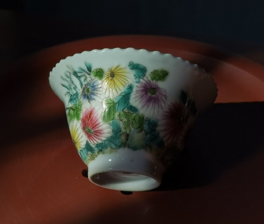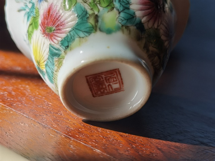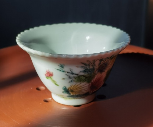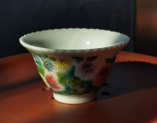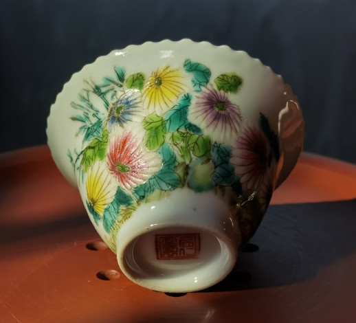 居和堂堆金矾红彩绘金海鱼跃小压手杯