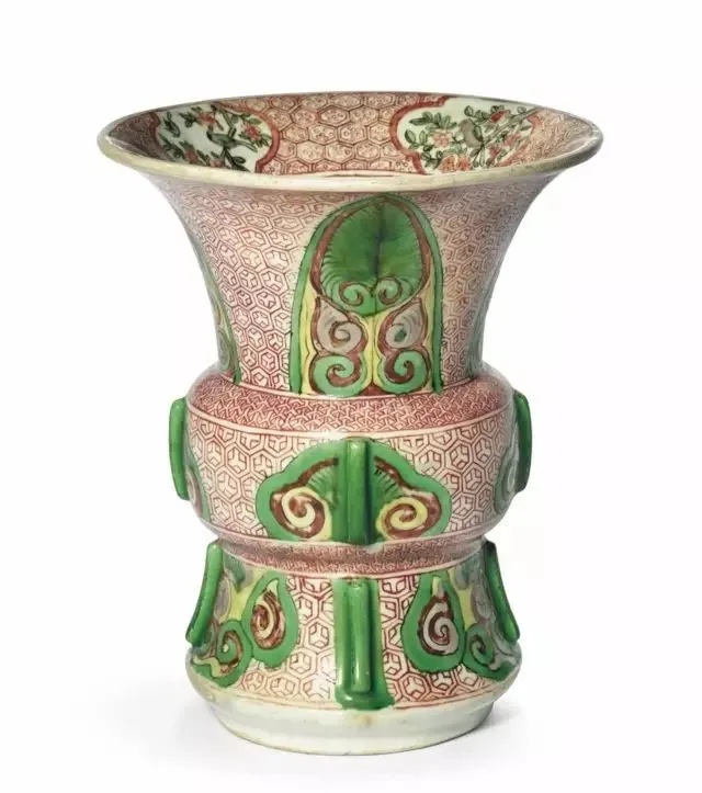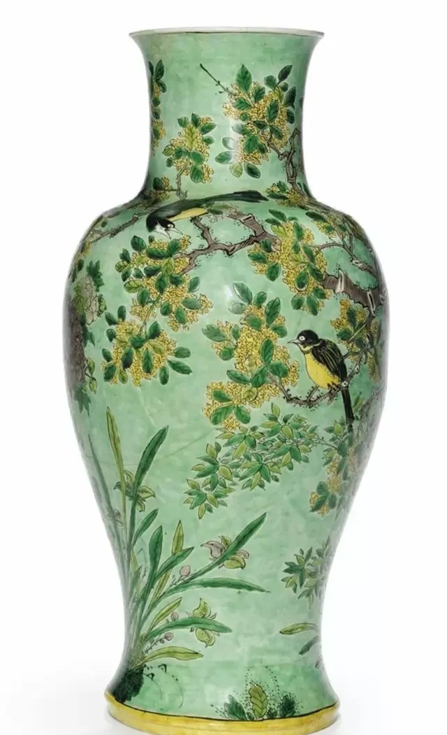 清康熙 绿地素三彩喜上眉梢图凤尾尊