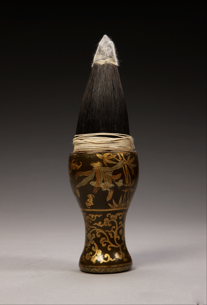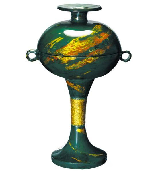 王羲之在《笔经》中记:“有人以绿沉漆竹管及镂管见遗,录之多年,斯亦可爱玩,讵必金宝雕琢,然后为宝也。”绿沉漆是东晋至南北朝时期兴起的新漆色,明代俞弁解释“绿沉”道:“杜诗‘苔卧绿沉枪’,绿沉以漆着色如瓜皮,谓之绿沉。”了解漆器常识的人都知道,推光漆涂层干固以后磨退推光,漆面才能如新鲜西瓜皮那么鲜亮,又如沉入水中般明澈。绿沉漆一改战国秦汉漆器黑红二色中的图腾孑遗意味,不仅赋予漆器澄澈雅致的美,更通过物理推擦,增强漆面的防水性与耐久性,成为魏晋文人“以清雅为美”的物质载体。