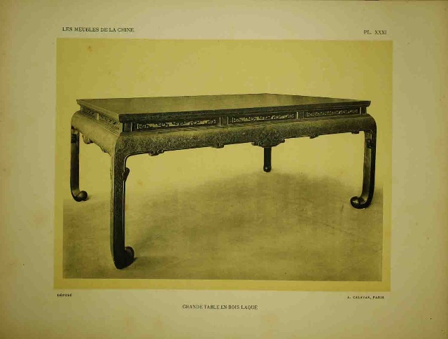 此桌的腿足和牙板上似是雕漆工艺,而非简单的彩绘。