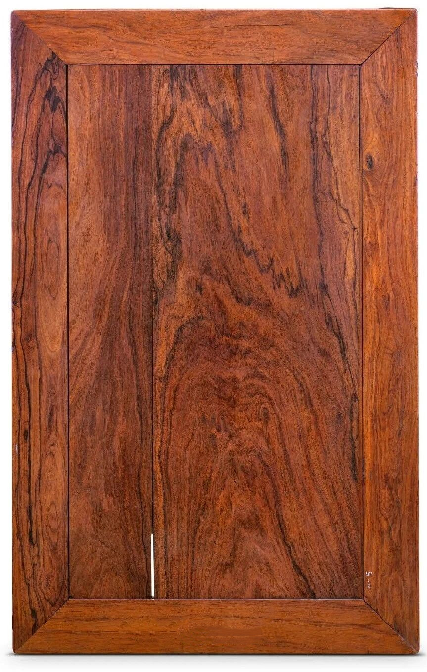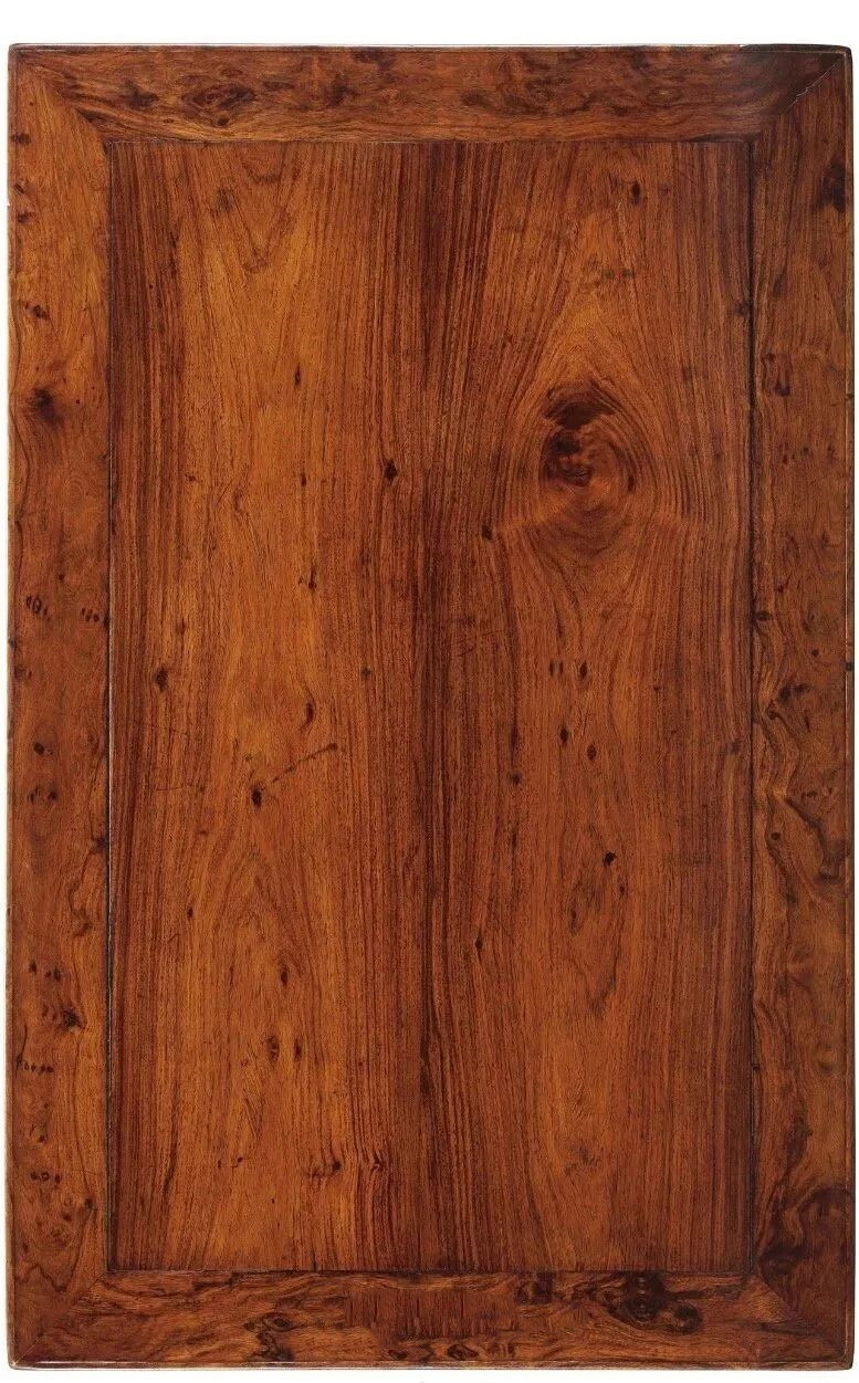 万里乾坤秋似水,一池水墨染万年。今天我们一起来看——黄花梨木纹图鉴。 黄花梨的山水及麦穗纹理, 是最为经典的弦切面花纹, 其他木材亦具备此种特征, 常用于座椅的靠背板及柜类家具的门板及隔板。 由于板材一木对开而导致的对称花纹, 上部两个活结对称, 配合周边的花纹像是狐狸的两只眼睛, 产生活泼可爱的狐面纹。 黑色的花纹像是墨色一般, 构建起中国传统泼墨山水的意境, 边上夹杂几个相连的活结鬼眼, 煞是可爱。 黄花梨径切面纹理, 表现为大直丝花纹, 木材稳定性高,不易变形收缩,承重受力性好, 多用作椅凳及床榻的大边、抹头, 柜类家具的面板。 老皮壳的黄花梨山水纹, 有如云石的纹理一般, 山峦屏障,层层叠叠,引人无限遐思, 这是古人文人钟爱的一种纹理。 另,右上部有小面积鸡翅纹, 很多人认为非黄花梨特征, 实际情况是黄花梨确有鸡翅, 但均是小面积聚集,成片出现则为可疑。 棕眼较大的黄花梨, 中间夹杂活结鬼眼。 花纹丰富多变的方角柜柜门花纹, 取自弯材,切面纹理兼具山水、鬼眼, 纹理绚丽诡谲、变化具有不确定性, 绝无雷同。 由数个活结相连形成的鬼面纹理, 左边花纹似猴,三个活结 分别做双眼及嘴巴。 圈椅靠背板开光部分纹理, 乍看似花梨木, 而黄花梨的油性所导致的木材视觉的温润度 是判断的重要依据, 且包浆醇厚,光泽耀人。 相对较大、较长的棕眼, 有人称之为“人字纹”,亦有人称之为“鱼肉纹”, 是黄花梨的经典纹路之一。 油性挥发严重的干皮壳案面, 风化程度较高,麦穗纹清晰明显。 黄花梨书箱的山墙侧板, 经典的弦切花纹,以山水与直纹为主。 双拼面板的黄花梨桌面, 每块面板均为弦切纹理, 边上以直纹为主,中部呈山水、涟漪变化, 中部夹杂狠下的活结鬼眼, 这是最为经典的弦切花纹, 有人称之为“行云流水”。 黄花梨药箱抽屉面板上的水波纹荧光, 这是由于木材的油性而散发出的 像琥珀一样的质感。 油性及光泽度极佳的黄花梨香盘纹理。 左边活结鬼脸相连,右边为直纹, 非常开门的黄花梨的纹路。 黄花梨相连的活结鬼脸 黄花梨桌面板呈山水纹, 黑色墨线明显似酸枝, 这种纹理在油性高的黄花梨中常见, 明清时期的黄花梨家具 多以海南岛东部地区所谓“糠梨”料制作 取自黄花梨根部的花纹, 纹理缠绕挤压,变化多端,纹理走向不确定, 木材的含油率及紧密度极高。 经过重新烫蜡的明代黄花梨画桌桌面花纹, 皮壳包浆呈现橘红色, 油性具在,温润十足。 满麦穗纹的黄花梨圈椅靠背板