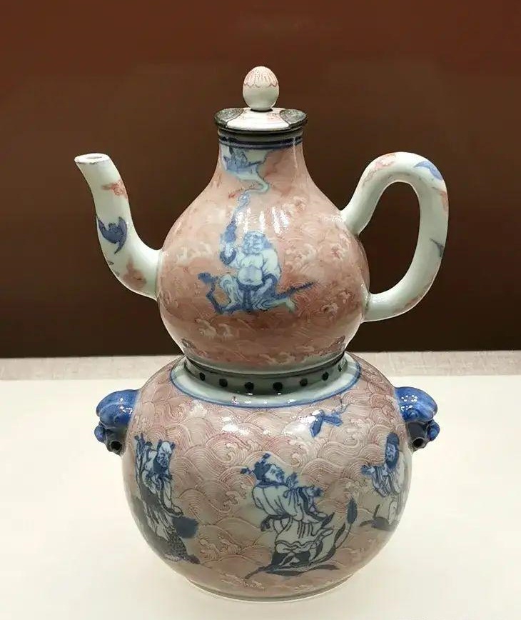 青花釉里红八仙温酒壶
