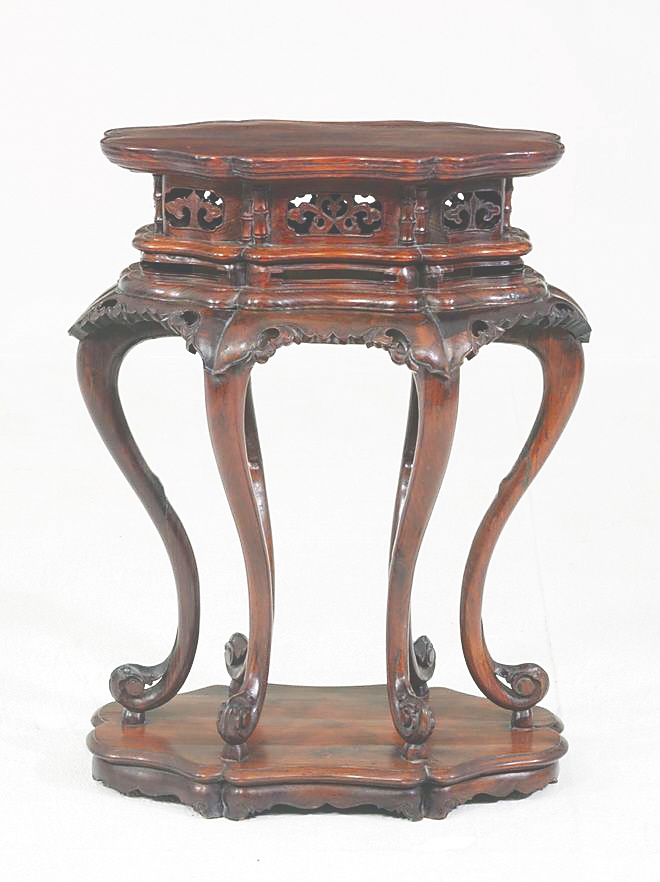 故宫博物院藏明代黄花梨木高束腰六腿香几。