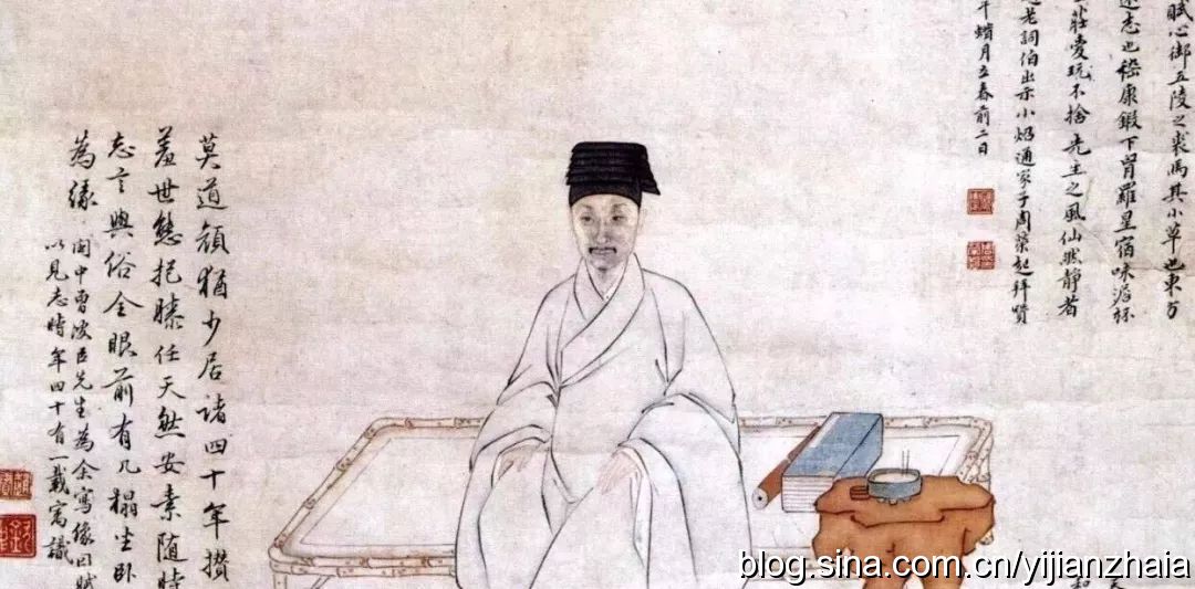 图中人物头戴四明巾,内穿白衬袍外穿大袖披风,足着皂色云头履,实为典型晚明写实文人行乐图。