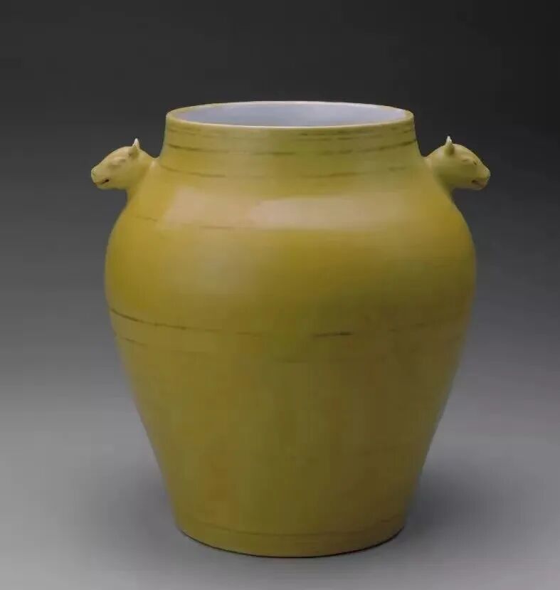 明代的黄釉有新的发展,洪武时的老僧衣即茶叶末的衍化;始于宣德的浇黄,更是明代杰出的黄釉;嘉靖以后,又有鱼子黄、鸡油黄等。入清后有康熙的淡黄,以及其后的菜尾、鼻烟、金酱等。