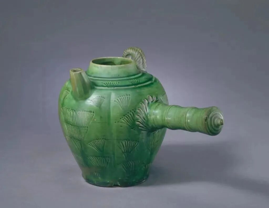 辽 绿釉划花单柄壶