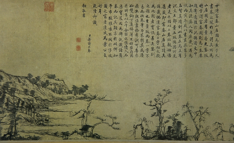 黄公望至正十年(西元一三五零年)在画上题跋,暗示将来这张画的落入人间“巧取豪夺”。精通易理,卜卦维生的老画家似乎早已洞识了天机。
