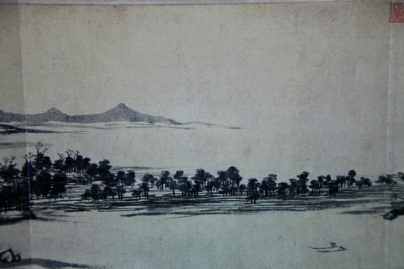 将近七百公分的长卷,观看者如坐舟中,舟行江上,忽远忽近,忽快忽慢,两岸山势随季节晨昏晦明,变化莫测。