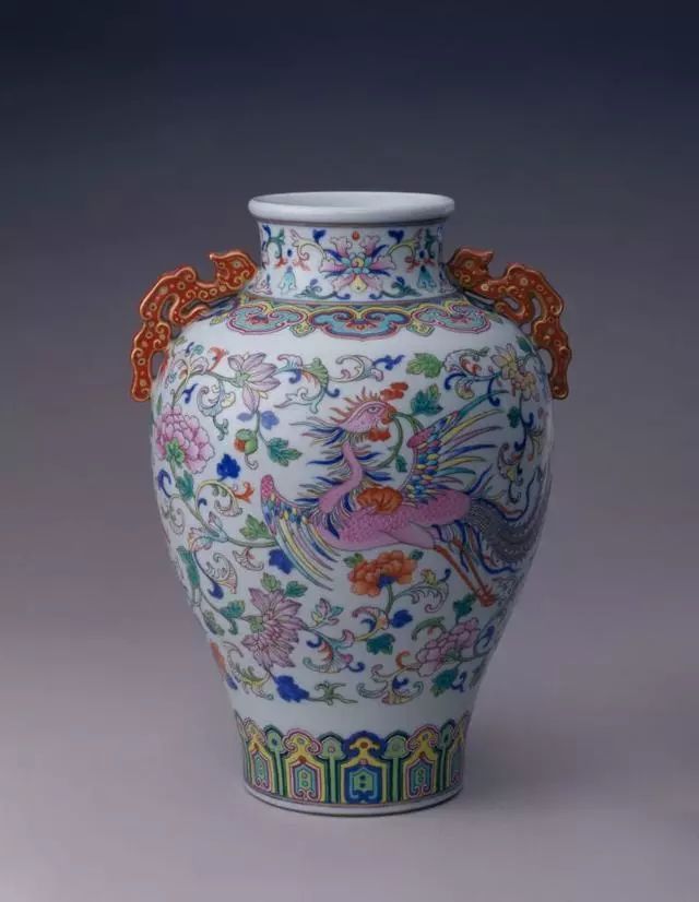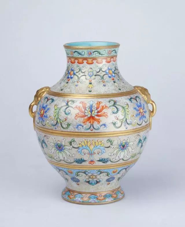 清乾隆珐琅彩勾莲纹象耳瓶 - 北京故宫博物院馆藏