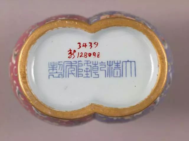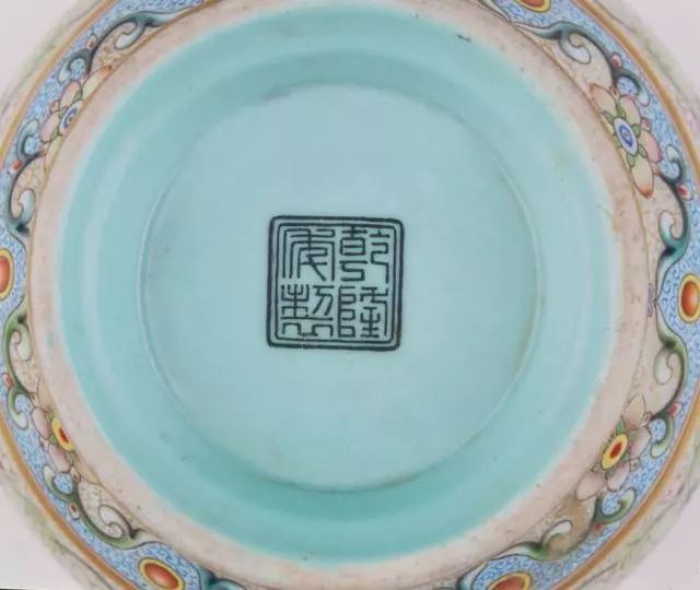 嘉庆官窑器一般都用“大清嘉庆年制”三行六字篆书款,主要为青花、无栏框。 亦有少量楷书款。 粉彩器上常见抹红款。 个别器物用刻划款。