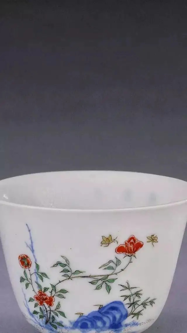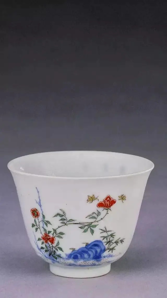[清·康熙] 五彩十二月花卉纹杯·十一月月季