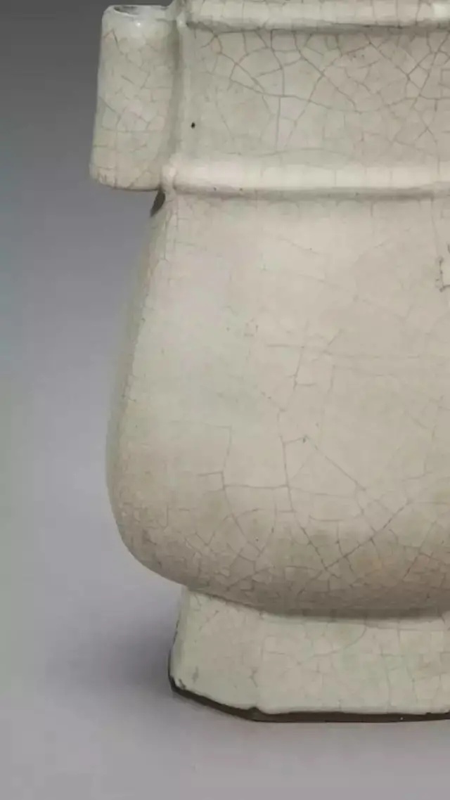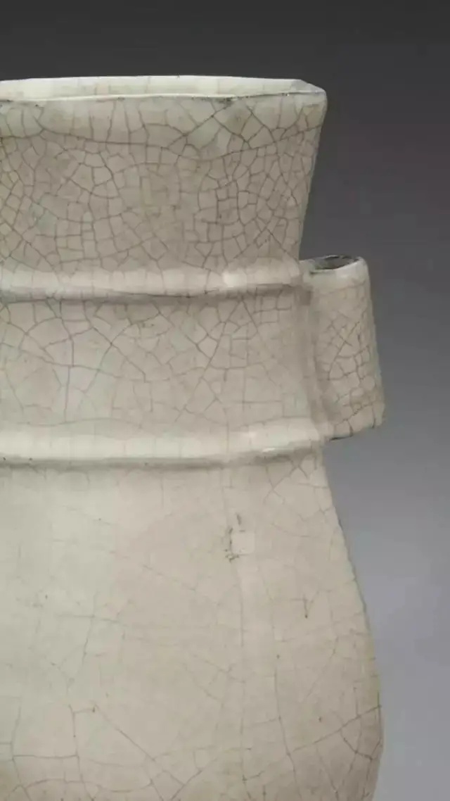 此瓶造型仿古青铜器,古朴端庄,釉色、开片、胎色等工艺特征突出 是传世哥窑瓷器中的代表作。造型仿古代青铜器是哥窑瓷器常见的现象。仿古源于中国古人的复古思想,他们相信理想的社会出现在夏、商、周三代,并视周朝为代表礼制的时代。要恢复古礼,用器也该具有古风。特别在宋徽宗以后,不少官府和民间用瓷都以商、周青铜器为楷模,复古之风从此连绵不绝, 影响深远。