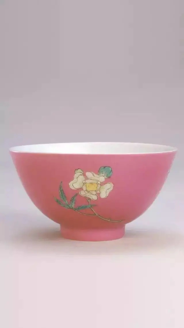 胭脂彩是从西洋传入我国的一种低温彩釉,亦称「蔷薇红」、「洋金红」 玫瑰红」。浅淡者为「胭脂水」, 浓重者又称「胭脂紫」。胭脂彩的工艺为首先在烧好的素瓷上采用喷釉的方法将釉料薄施于其上,入窑经800°C低温再次烧制而成。胭脂彩以金为着色剂,但与金的颜色截然不同,在铅硼熔剂中加人万分之一左右的金,就会出现浅粉或红紫系统的颜色,由于它略带螺红的色调,极似胭脂, 故称胭脂彩,俗称胭脂水。胭脂红色在康熙时期的珐琅彩绘中偶有应用,如当时珐琅彩中出现的淡红蔷薇色,似红宝石般的浓胭脂色,或闪紫的苏枋色等。到雍正时期,出现了众多呈色稳定、以单一胭脂彩作装饰的器物。造型以杯、碟、盘、碗较为多见,均为景德镇窑所制。