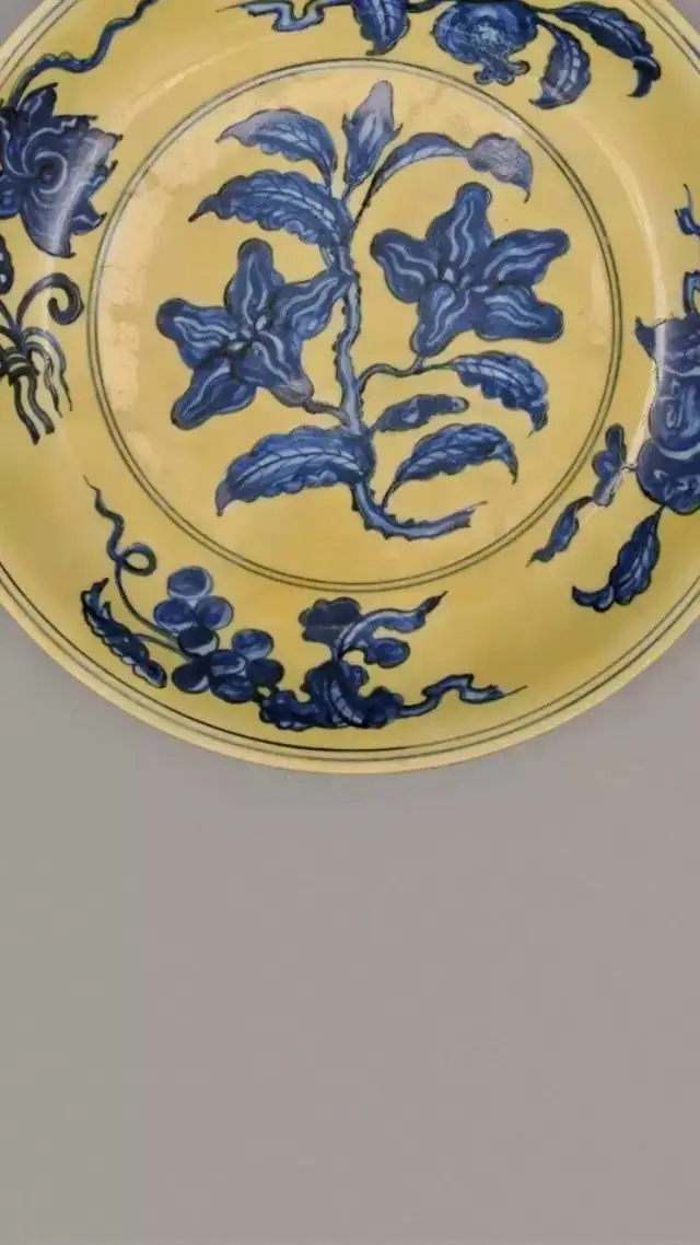 黄地衬托蓝花,给人以温馨素雅之美感。该品种创烧于宣德朝景德镇御器厂,后来成化、弘治、正德、嘉靖等朝均有烧造。