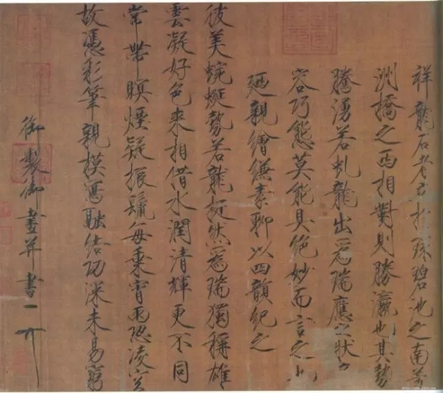 将以上构成其明显特征的顿笔和折笔处撇开来看,其结字规模唐人,谨守法度,并无过多突破和个人特征。但做到这一点本身也并非轻而易举,皇家过眼虽皆上上珍品,亦需天资勤奋才能有所成就,赵佶无愧于此。