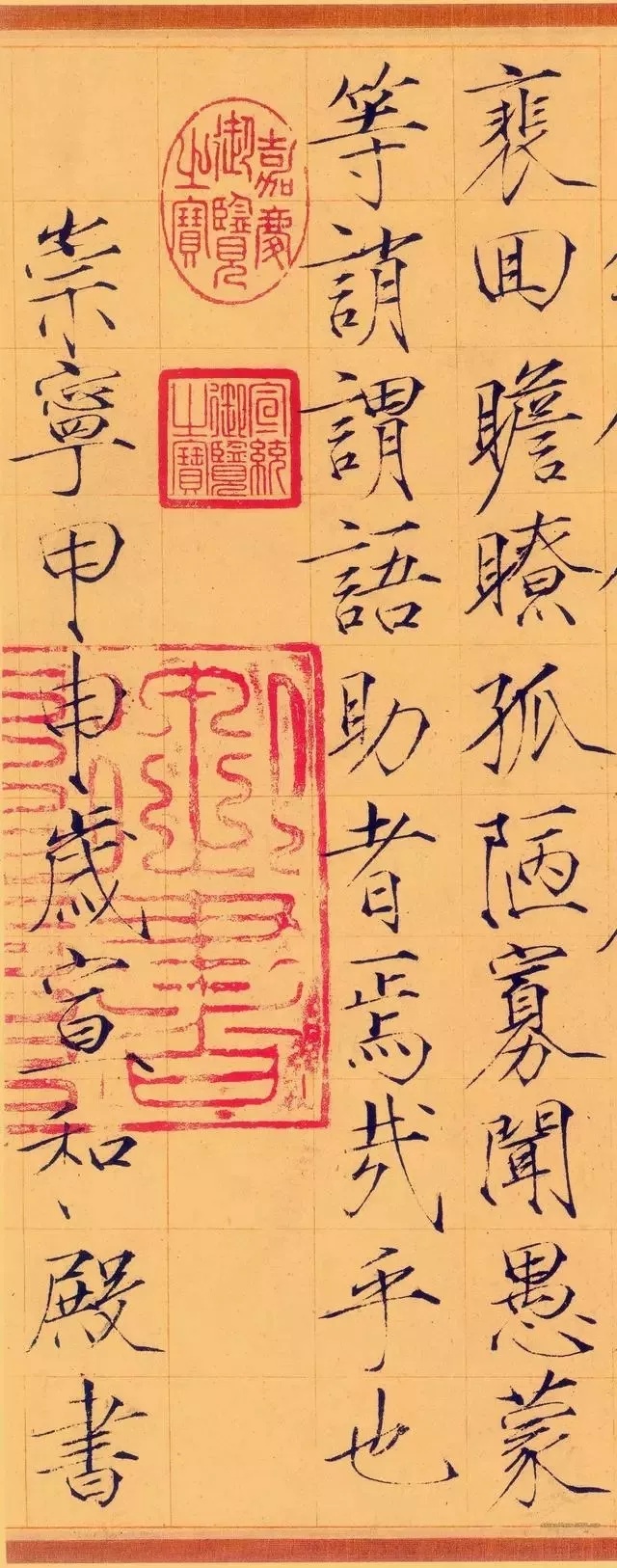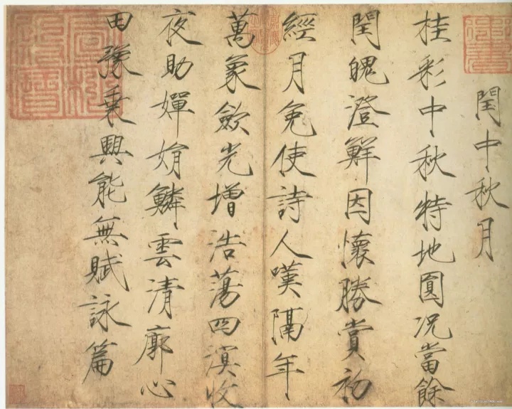 ▲宋徽宗《闰中秋月诗帖》,楷书,纸本,后期风格,北京故宫博物院藏。
