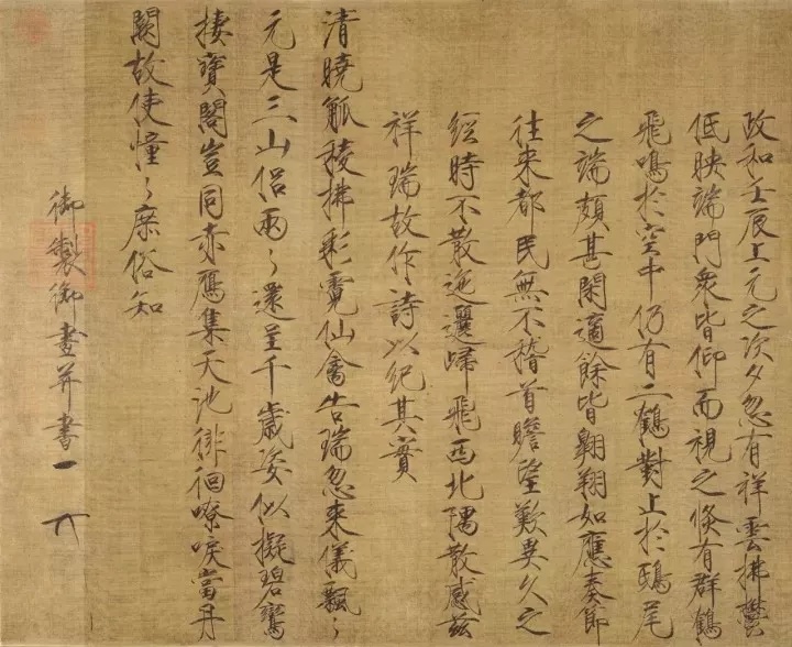 ▲宋徽宗《瑞鹤图》绢本,卷,楷书,后期风格,辽宁省博物馆藏。
