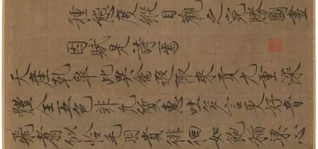 ▲《上阳台帖》,唐,李白书,纸本,纵28.5cm,横38.1cm。草书5行,共25字,故宫博物院藏。