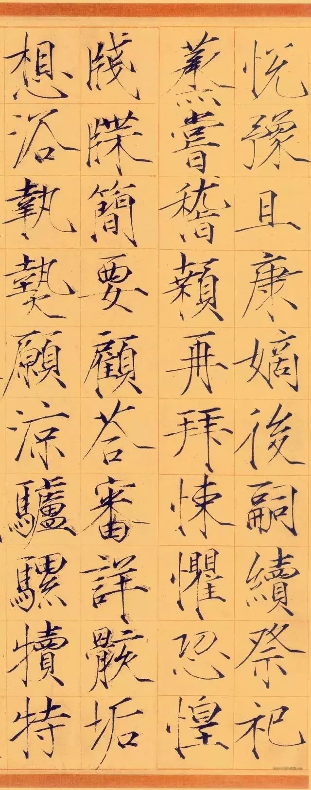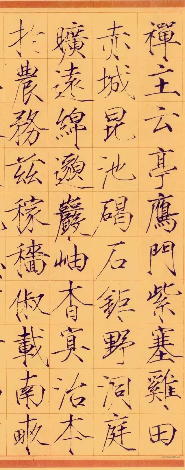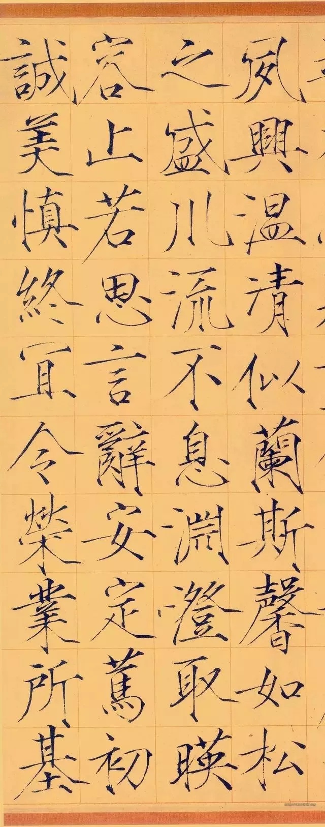 《夏日诗帖》是书于政和年间,经典瘦金名帖代表作,流传九百余年,至今保存完好,现珍藏于故宫博物院。是瘦金小楷的一块玲珑剔透光芒四射的完璧!古人评论瘦金体云:“横画收笔带钩,竖画收笔带点,撇如匕首,捺如切刀,竖钩细长而内敛,连笔飞动而干脆”,是对瘦金书特色的高度概括。又有赞云:瘦金书“金镂之妙,细比毫发,殆与神工鬼能,较奇逞并于秋毫间。”对瘦金体书法的高度艺术成就推崇备至。上述特点在此贴中可谓体现的淋漓尽致,毫无遗憾可言。