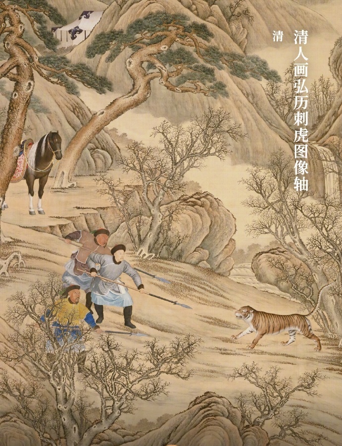 清人画弘历刺虎图像轴