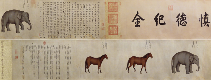 清乾隆,贺清泰、潘廷章,贡象马图卷。乾隆