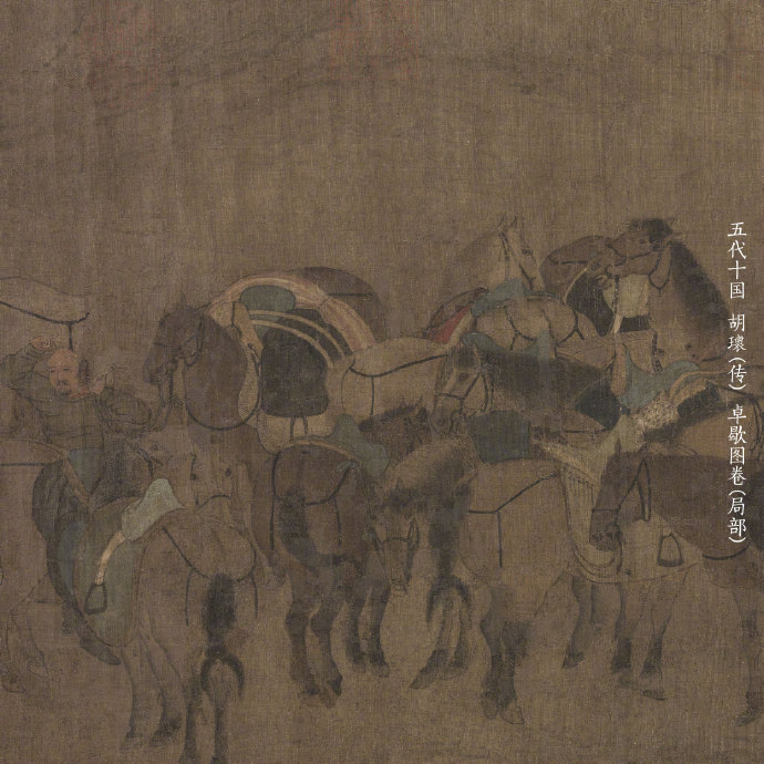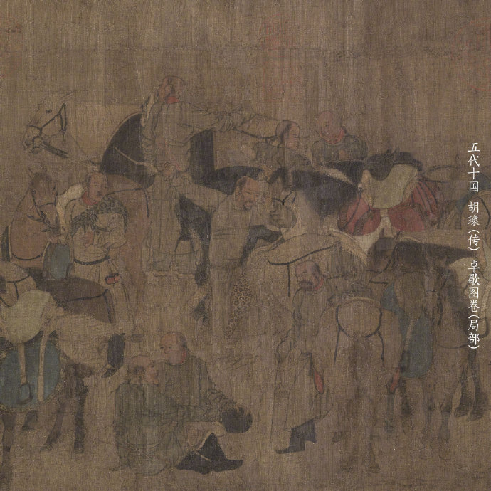 健步善行、忠诚坚韧的马,自古便是人类生活中可靠的伴侣。这幅《卓歇图》,生动描绘了人群携马出游歇息时的画面,充满了浓厚的北方草原民族生活气息。