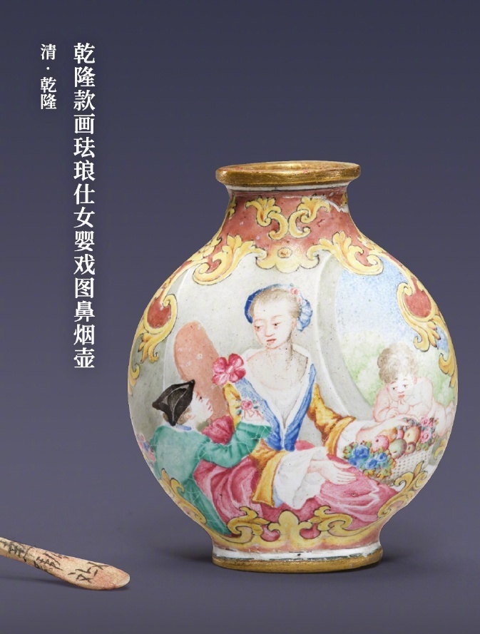 乾隆款画珐琅仕女婴戏图鼻烟壶