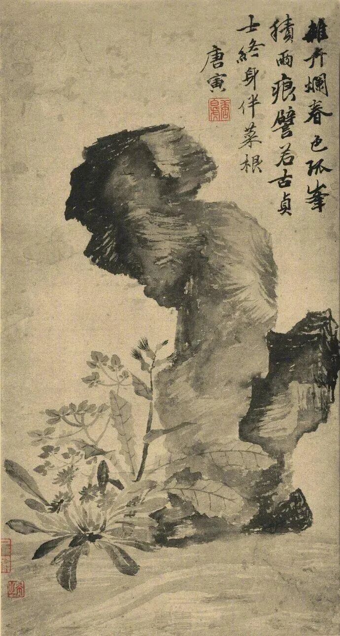 明-唐寅《立石丛卉图》