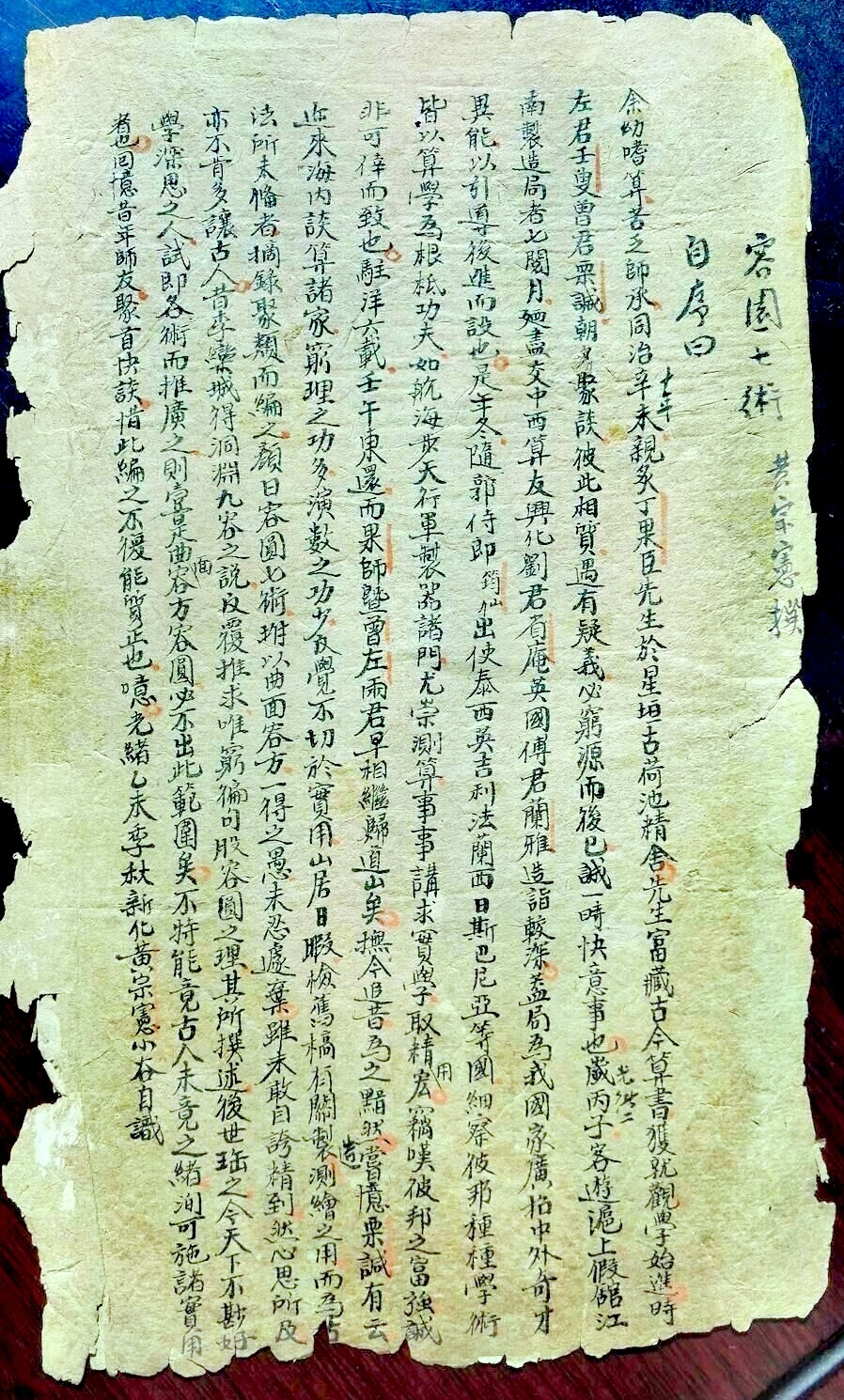 清末数学家黄宗宪《容圆七术》自序手稿(仅见)