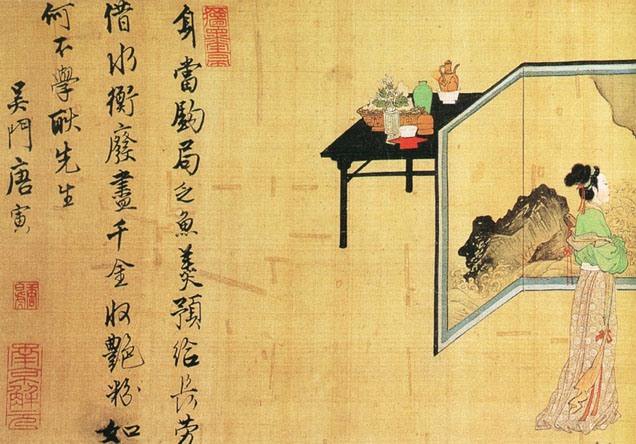 明 唐寅 绢本 设色 纵30.8厘米 横547.8厘米 重庆市博物馆藏