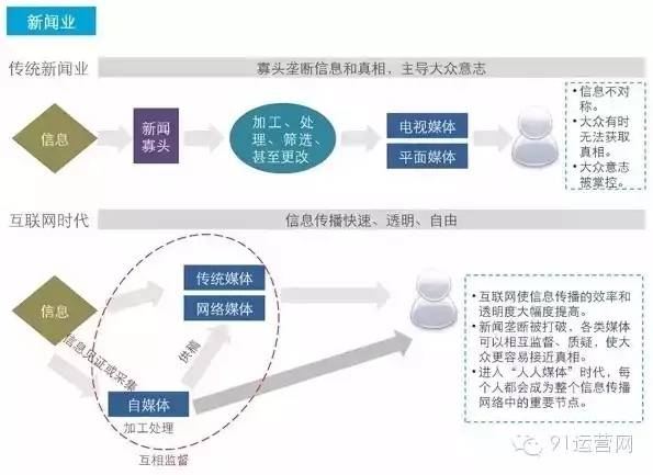 从传统新闻行业到自媒体,可以看做是从话语权威机构对人的信息传播变为一个有人格魅力的人对人的信息传播。另外,自媒体从业人员要想盈利,前提必定是需要依靠强大的个人人格魅力,吸引到真正为你疯狂的粉丝。