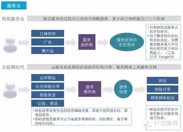 互联网最有价值之处不在自己生产很多新东西,而是对已有行业的潜力再次挖掘,用互联网的思维去重新提升传统行业(中国好案例17章)。从这个角度去观察,互联网影响传统行业的特点有三点: