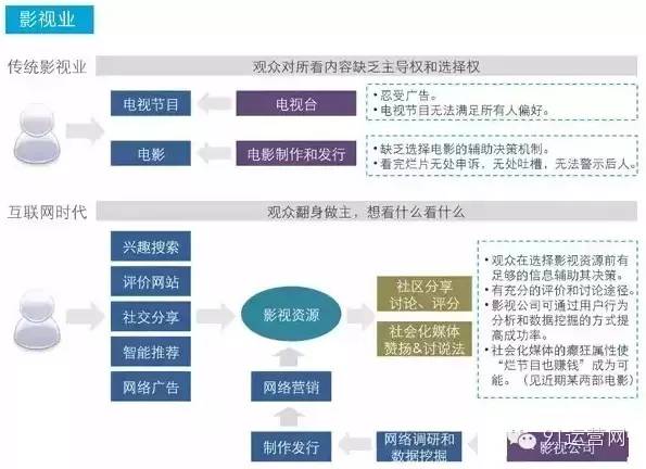 第一,互联网要求电影行业也像电视节目行业那样,让更加优胜劣汰。豆瓣电影和时光网都是非常不错的产品,专门针对电影进行评论,使得消费者的选择时间得以控制。这其实也是一个很好的类似维基百科的案例。