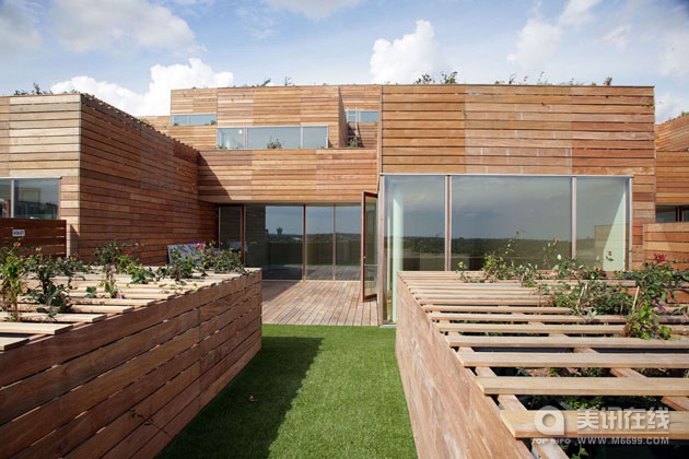 每个住户都配备一个露天屋顶花园,花园由露天阳台和植物花园组成,完善的排水系统为花园植物带来充足的雨水。将室内空间与花园相隔开来的是一个巨大的可滑动透明玻璃门。推开它,户主就可以在室内享受到充足的光线和清新的空气。