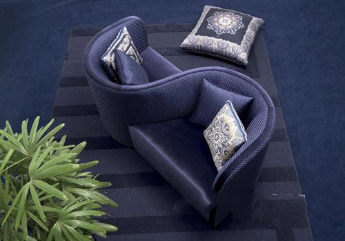 小沙发Face To Face,蓝色丝绒面料,两个相连的座位营造和谐浪漫的气氛。