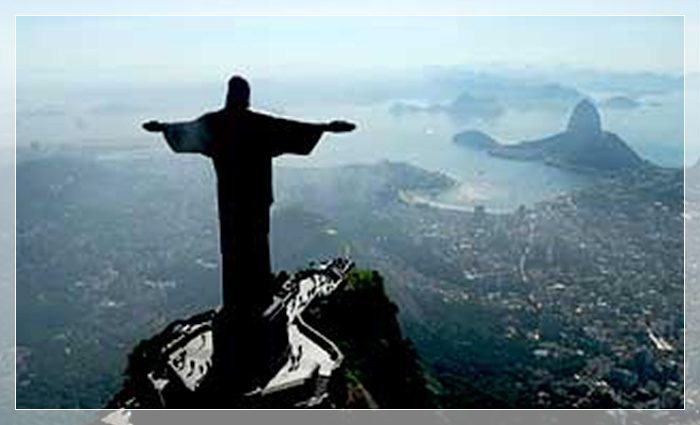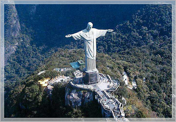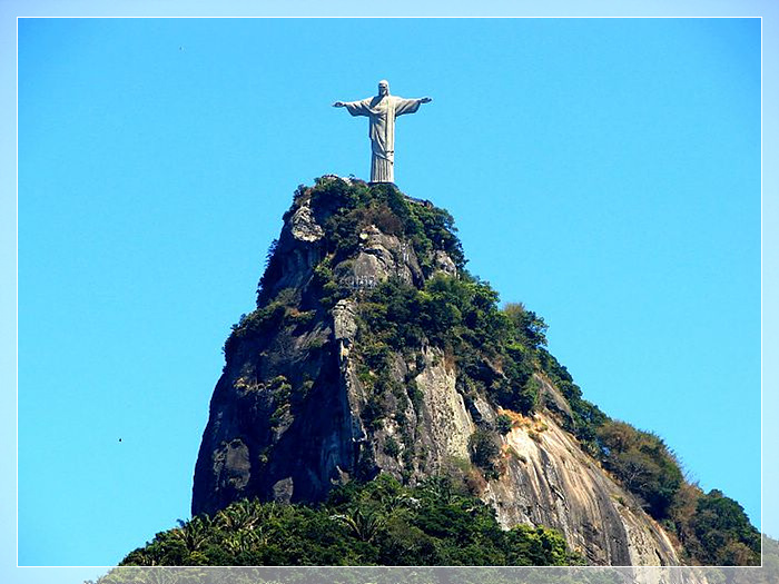 耶稣山,在巴西里约热内卢市内有一座驼背山,山上高710 米。山上有一尊高大 的耶稣十字像,山下有茂密的森林,郁郁葱葱,景色秀丽,是巴西最著名的风景区。耶稣像线条明朗,丰姿绰约,呈浅绿色。它的总高度为38 米,头部长为3.75 米,手长3.20 米,两手相距28 米,身上衣袖宽度为5 米;雕像头重30 吨,手重 8 吨,总重量为205 吨,是世界上最有名的巨型雕塑珍品之一 。